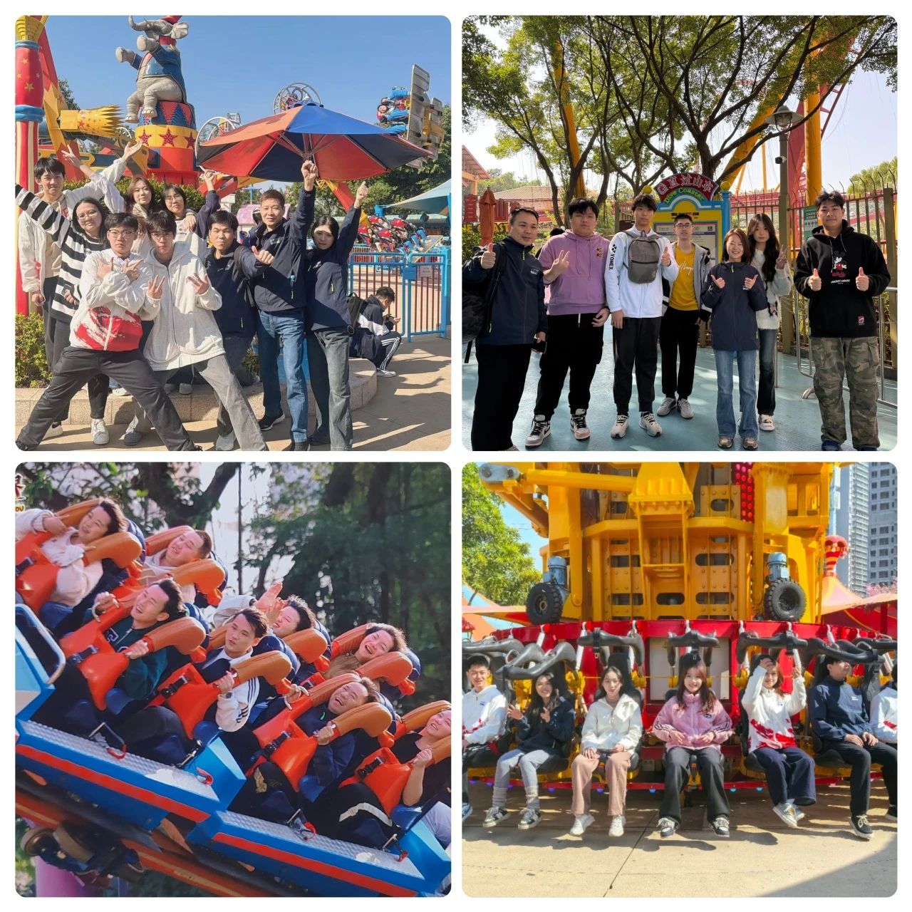 活动前,,,,全体师生精心准备,,乘坐大巴前往广州长隆欢乐世界。。